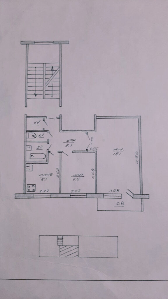 Общая площадь квартиры 41,3 м2, жилая 25,7 м2, две раздельные комнаты 18,1 м2/ 7,6 м2, из зала балкон. Раздельный санузел.