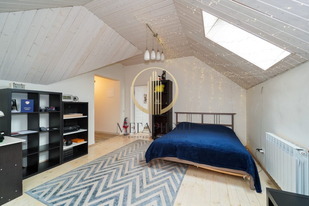 Второй этаж: просторная TV-зона с встроенной гардеробной. Также установлены зенитные стеклопакеты с возможностью вращения.